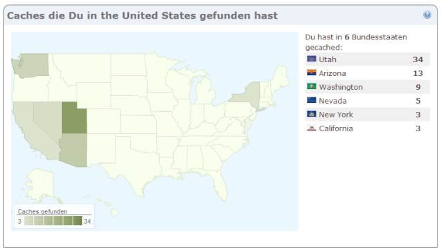 - Auf unserer Route haben wir 67 Caches in 6 verschiedenen Bundesstaaten eingesammelt.