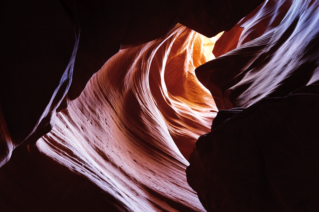 Bei dem Antelope Canyon handelt es sich um einen sogenannten Slot-Canyon. Er hat sich durch durchfließendes Wasser geformt. Ist Regen angesagt sind solche Canyons in der Regel gesperrt, da es zu einer reißenden Flut innerhalb des Canyons kommt. Ist schönes Wetter, wie bei uns, gibt sich ein tolles Lichtspiel. Die beste Zeit für eine Begehung ist die Mittagszeit. Die Touren sind aber schon Wochen im Voraus ausgebucht. Apropos Touren, die gibts in der Visitor-Information in Page.