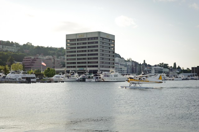 Wir schauen noch einen Sprung am Broadway vorbei und gehen dann zum Lake Union. Es ist unglaublich, man ist in einem Ballungszentrum der USA und es fühlt sich an wie auf einem Dorf. Hier am Lake Union werden kleine Boote aufgemöbelt, überall riecht es nach Farbe und Verdünner. Hier und da kommen Kanu-Fahrer und alle 10-15 Minuten landet ein Wasserflugzeug. Direkt hinter einem ragt das Space Needle in die Luft. Die untergehende Sonne taucht alles in ein schönes, warmes Licht. Hier kann man es sich gut gehen lassen.