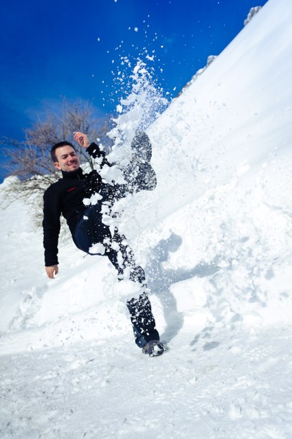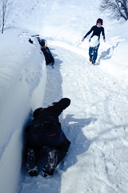 Als wir an einer Stelle ankamen wo es über ein riesiges (steileres) Schneefeld gegangen wäre, änderten wir unser Tagesziel. und vertrieben uns die Zeit mit einem Schneefussball-Shooting 🙂