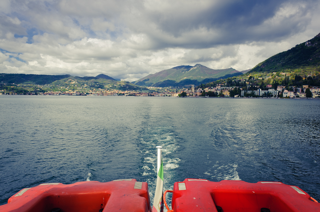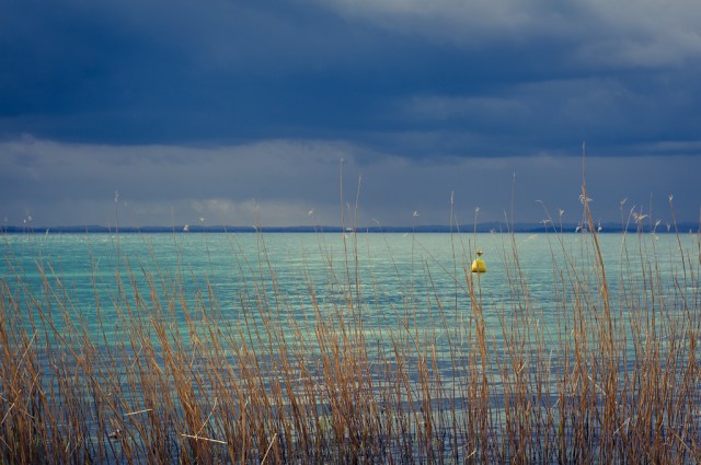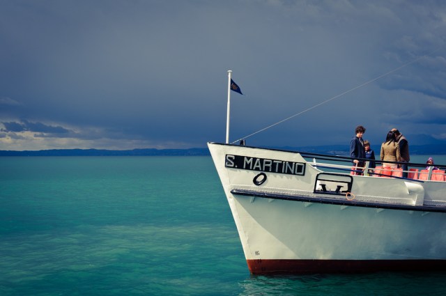 Wir fuhren auf die andere Seite des Sees, nach Bardolino. Über dem See hingen dunkelgraue Wolken, aber irgendwie schien auch die Sonne. Eine komische Szene, die den See grünlich stimmte.