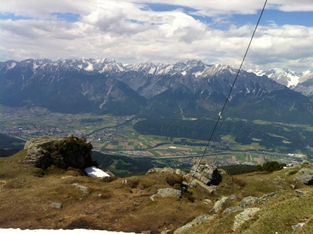 Im Jahr 2008 zogen wir in unsere Wohnung in Wattens mit direktem Blick auf den „Largo(t)z“ (2214 Meter) -> schreibt man ihn nun mit oder ohne „t“? Schon damals wollte Falk eigentlich unbedingt einmal dort hinauf. 2010 begannen wir Dosen zu suchen und freuten uns, dass hier auch Dosen liegen (toll). Eine Besteigung rückte also höher in der Prioritätenliste. Letztes Jahr dann, sollte es soweit sein. Wir starteten und mussten leider umkehren, da das Wetter umstürzte. Dann kam der Winter und wir wollten mit den Schneeschuhen starten, aber auch das ging sich nicht aus. Mist. Aber HEUTE, ja heute können wir einen Erfolg verbuchen. Wir sitzen zwar mit hinigen Füssen und Sonnenbrand Zuhause, aber wir sind irgendwie glücklich 🙂