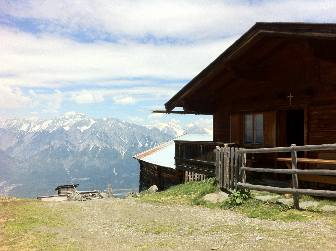 Dann geht es weiter und eigentlich immer bergan. Irgendwann landet man in einer Rodelbahn und später in einem Steig. Kaum hat man sich versehen hockt man dann auch schon auf der Largozalm. Zugegeben so einfach ist es nicht 🙂 Wer gern Caches sucht, dem sei dieser hier, direkt an der Alm, zu empfehlen: Es isch a Kreuz