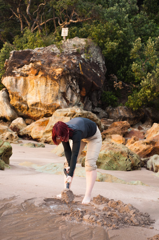 Das was hier so dampft sind die oben genannten Quellen. Ist man am frühen Morgen dort, dampft es überall am Strand und die Quellen zeigen sich, nutzt man die Ebbe am Abend muss man suchen. Unsere Campingplatznachbarn liehen uns ihren Spaten und so legten wir los.
