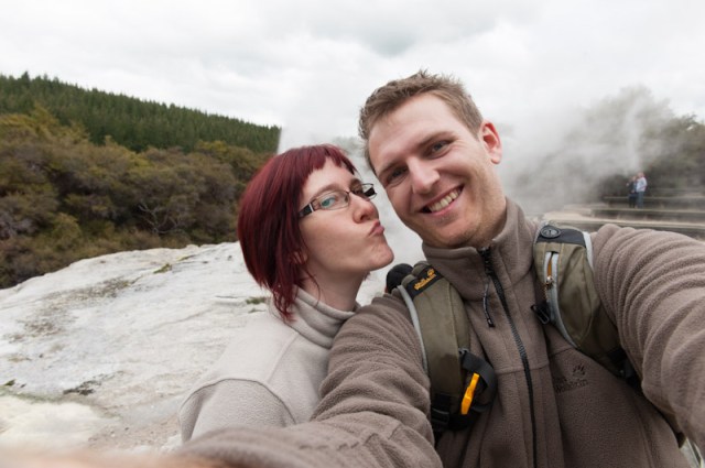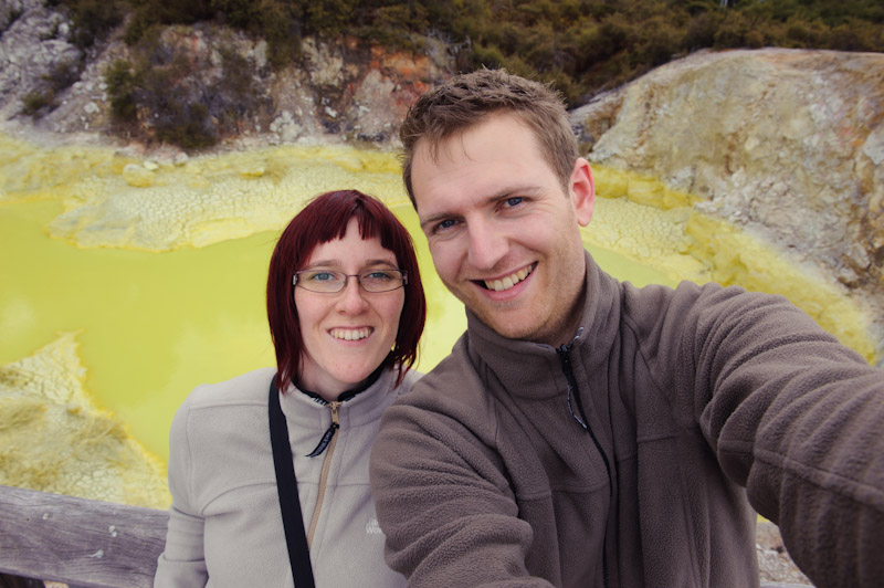 Was ist eigentlich seit dem letzten Eintrag passiert? Beim letzten Mal parkten wir unseren Camper ja am Campground bei Rotorua und genossen die heißen Pools. Am kommenden Morgen fuhren wir dann ins gerade einmal 6 KM entfernte „Wai-O-Tapu Thermal Wonderland“. Bei diesem Park handelt es sich um eine Ansammlung von bunten vulkanischen Thermalquellen, welche schön anzusehen sind (aber auch wie die Hölle stinken :-)). Laut Reiseführer ist der Park die bunteste Ansammlung von Thermalquellen. So gibt es hier mal einen grünen See und dort einen gelben.