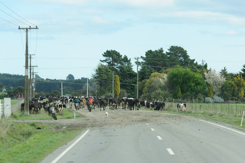 Eine Kuhherde wurde übersiedelt und versperrte den Weg, 2 Typen machen Autofahrern dabei den Weg mit ihren Mopeds (hupend) frei. Der Hammer 🙂
