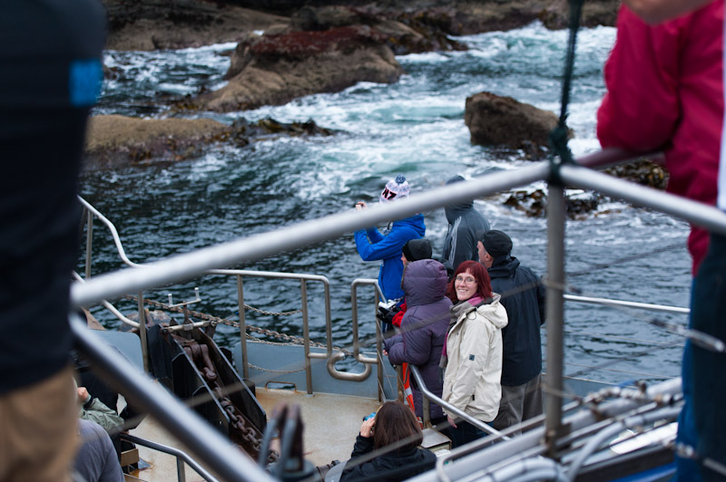 Wie so oft war es bitter kalt, es regnete und so begann die Fahrt vorerst unterhalb des Sonnendecks. Nach den ersten Kilometern stoppten wir und man durfte sich zwischen einer Bootstour oder Kajaking entscheiden. Dreimal darf geraten werden für was wir uns entschieden – FALSCH, wir sind Kajak gefahren. Cool war es, nur regnete es uns zum Ende hin wieder so richtig ein 😦 Halb so schlimm, zurück an Bord gab es heiße Suppe.