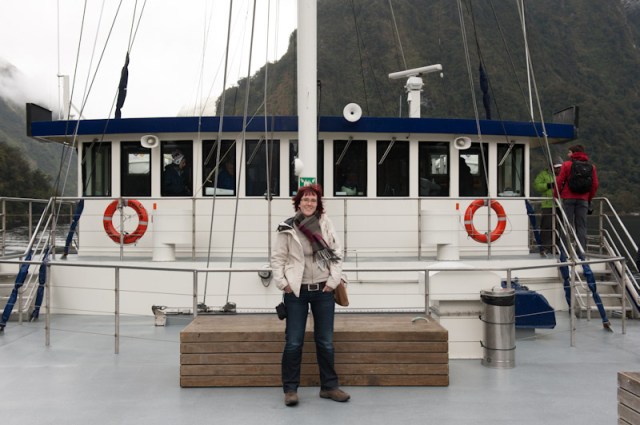 12 Uhr ging es an Bord eines Katermerans in Manapouri. Dieser brachte uns dann sicher ans andere Ende des Lake Manapouri. Hier nabelten wir uns kurz für einen Geocache ab :-). Kurz darauf fuhren wir mit dem Bus über den Wilmot Pass und kamen gut 40 Minuten später am Doubtful Sound an. Unser Schiff wartete bereits und so ging alles ganz schnell. Wir waren an Bord, der Skipper stellte die Mannschaft vor und wir bekamen den Schlüssel für unsere Kabine. 🙂