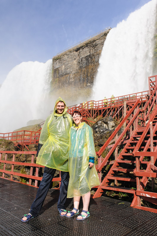 Man denkt sich schnell, dass der bessere Blick wohl doch (wie so oft beschrieben) der von der kanadischen Seite aus zu sein scheint. Die American Falls sieht man zumindest nur seitlich und den idealen Blick auf den Horseshoe Fall findet man auch nicht wirklich. Allerdings kann man hier zu „Cave of the Winds“ absteigen und sich mal so richtig einweichen lassen 🙂 Eigentlich sinnlos, aber ziemlich cool.