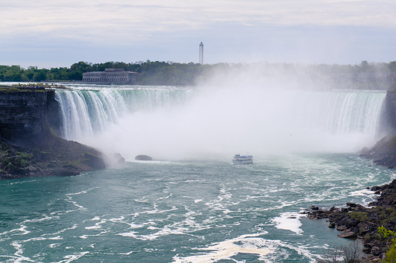 Ebenso kann man mit einem Schiff zum Horseshoe Fall fahren, dass ist ähnlich nass. Wir haben das von Kanada aus gemacht. Generell beeindruckend ist die Gischt, man hat sie schon von weiten bei der Anreise sehen können. Speziell auf der Kanadischen Seite stehen deshalb auch überall Schilder bzgl. Eisglätte auf den Straßen. Wir haben auch Bilder aus dem Winter gesehen und waren ganz begeistert von den Eisformationen. Eventuell ist der Winter sogar die bessere Zeit für einen Besuch hier?