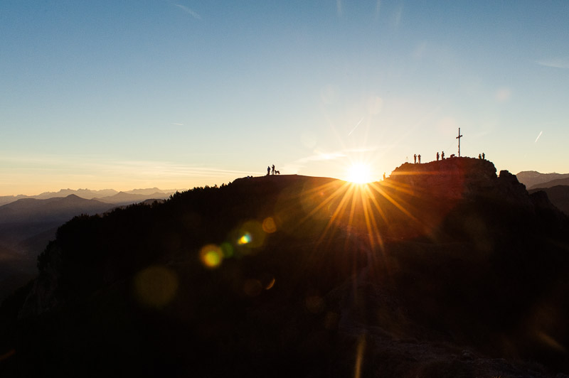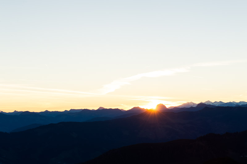 Ein paar Meter entfernt kann man dann nochmal festhalten wie die Sonne über die Gipfel aufsteigt: