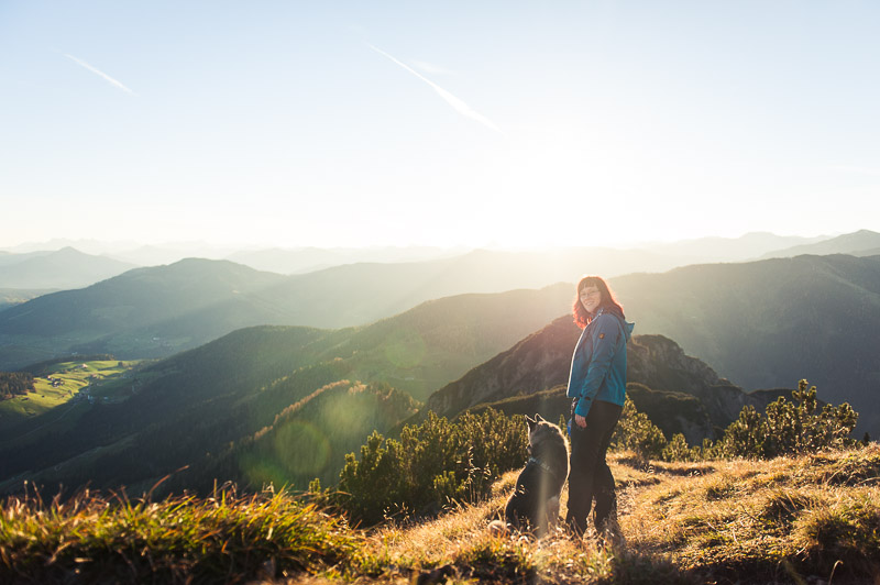 Nach einem kurzen Frühstück verließen wir um 5 Uhr das Haus, holten noch kurz Krissis Bürohund und Harry ab. Gegen 6:15 Uhr standen wir am Parkplatz der Holzalm bei Brixlegg. Man wandert gut eine Stunde und schon steht man oben am Gipfel und hat diesen fabelhaften Ausblick, inkl. Inn(tal) und dem „Wilden Kaiser“: