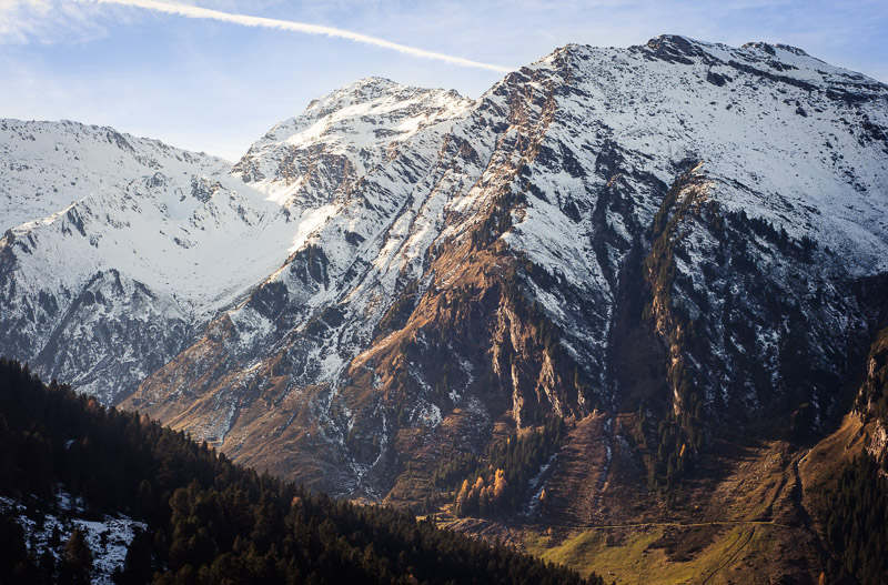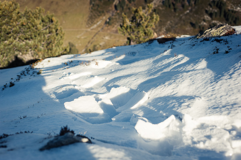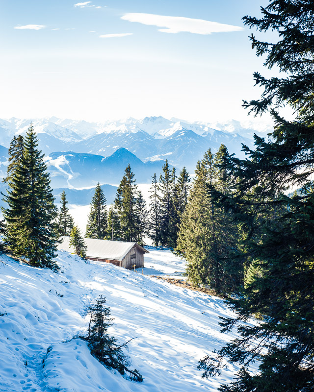 Gefühlt sah es den ganzen November so aus. Und so unternahmen wir ein paar Wanderungen. Am 8. nahm sich Falk kurzfristig einen Tag frei und vertrieb sich am Weerberg seine Zeit. Das Tourziel war zunächst die Weidener Hütte, dort angekommen stand an einem Wegweiser, dass der Nafingsee nicht mehr weit sei und dort angekommen, sollte das Gipfelkreuz des Hubertusspitz in gerade einmal 30 Minuten zu erreichen sein. Letzteres war dann doch nicht zu erreichen, knapp unterhalb des Gipfelkreuzes lag dann einfach zu viel Schnee. Es war rutschig und so war der Rückzug angesagt, mit Schneeschuhen wäre das nicht passiert. Aber nachdem das Ziel des Tages eigentlich ein Hütte war, wäre es nur unnötige Last am Rücken gewesen.