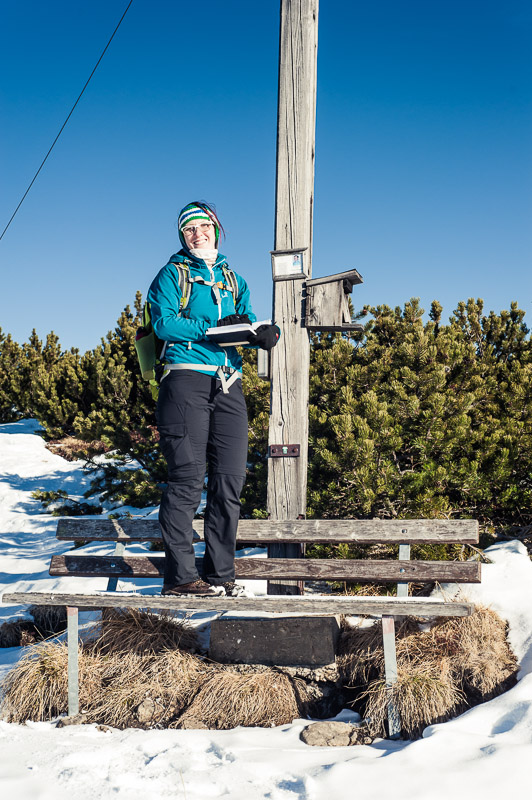 Oben machten wir dann auch nur unser traditionelles Gipfelbild, gingen wieder zurück zur Alm um etwas zu essen (hier gibt es einen super Kaiserschmarrn) und anschließend weiter zum Auto zurück.