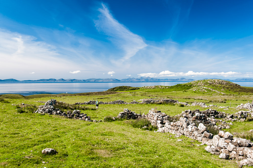 Sieht man dann die alte Ruine eines Hauses und mehrere Natursteinmauern, ist man kurz vor dem Ziel, dem vollautomatisierten Leuchtturm von Waternish.