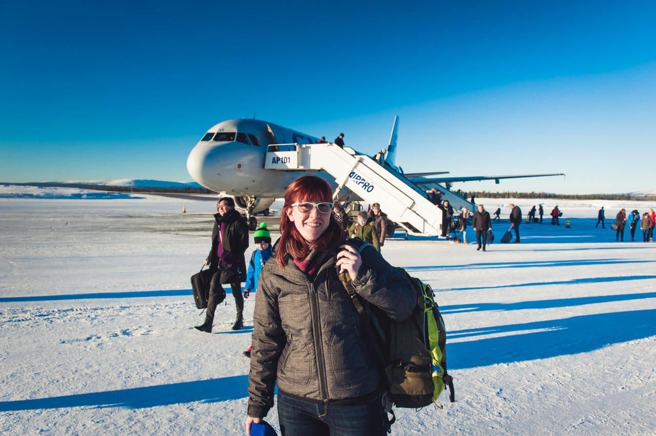 Zum Glück gibt es noch „wintersichere“ Gegenden und so verschlug es uns, gemeinsam mit Harry, Verena, Edgar und Verenas Bruder Chris, für eine Woche eben genau in solche Breitengrade. Nach einem stopover in Helsinki landeten wir am 14. Februar gegen 12 Uhr im finnischen Lappland und noch als wir die Stufen vom Flugzeug herabstiegen gefroren uns die Nasenhaare. -24°C bei schönstem Sonnenschein. Herrlich. 😀