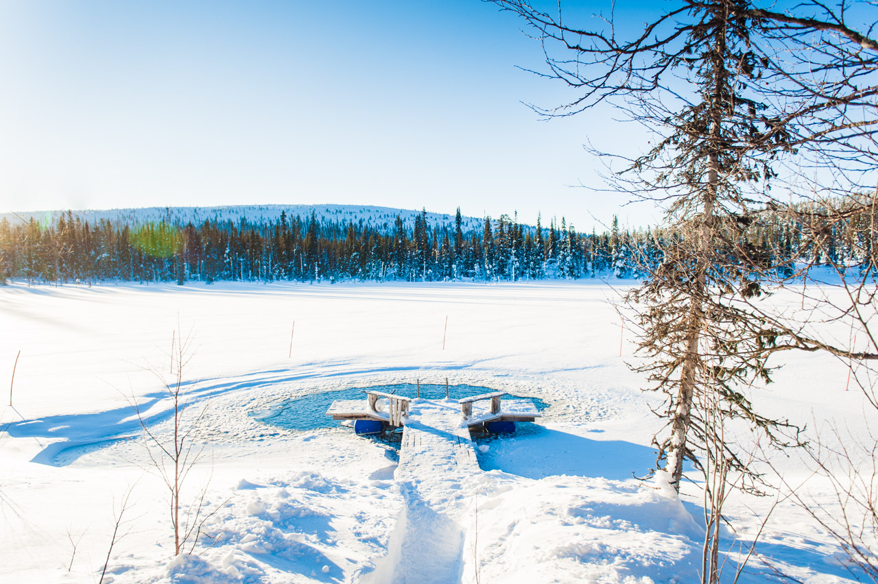 Als wir von unserer Erkundungsrunde wieder in der Lodge landeten, staunten wir nicht schlecht das es erst 15.15 Uhr war. Unglaublich wie schnell man sich durch eine tiefstehende Sonne verwirren lässt. Wir vertrödelten die Zeit – neudeutsch „chillten“ – und gingen in die Sauna. Ein Teil unserer Gruppe traute sich auch direkt in das Eisloch im See. Die Sauna wurde übrigens für die nächsten Tage zum festen Ritual. 🙂