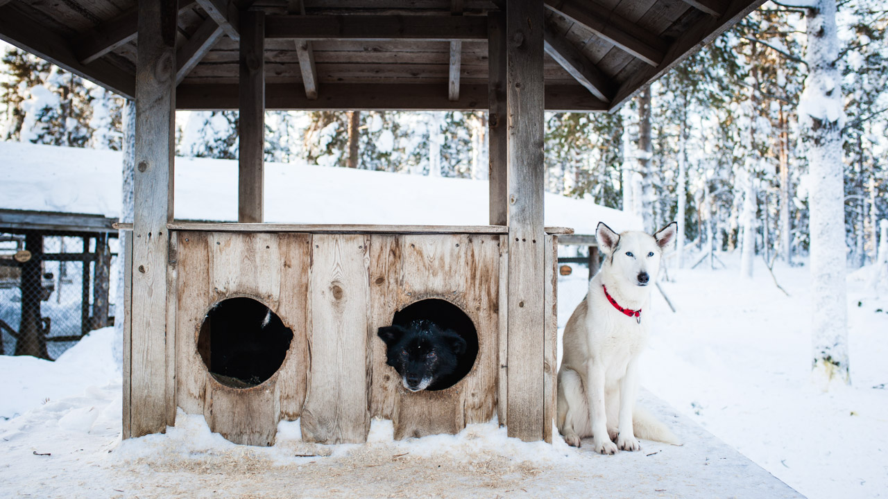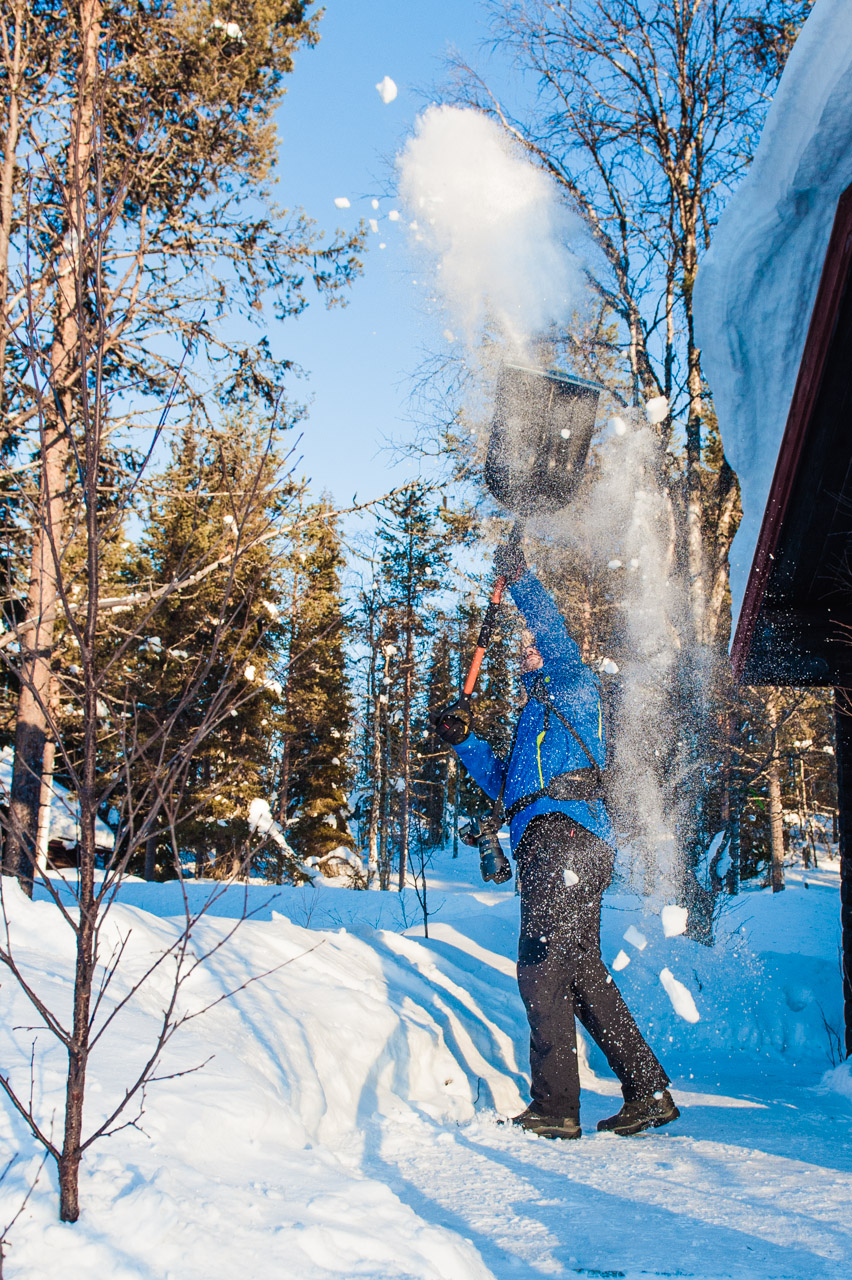 Tuomo bringt uns immer weiter in tief verschneite Wälder und schlussendlich landeten wir am Empfang der Lodge. Sonja von Rezeption checkte uns alle ein und während wir uns über der Lunch-Buffet hermachten, bereitete sie unsere Leihbekleidung her. Wir sind also für die nächten Tage mit warmen Sachen ausgestattet. 🙂
