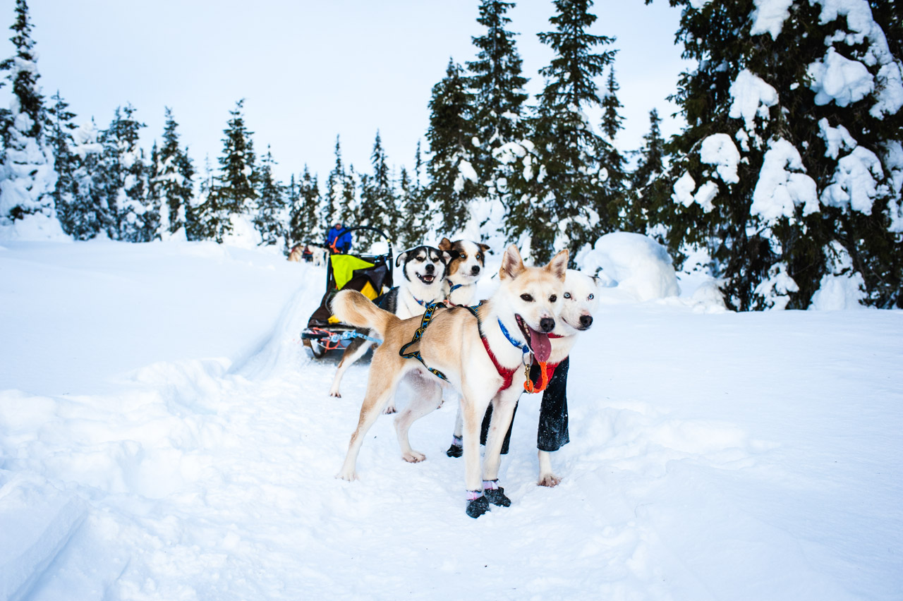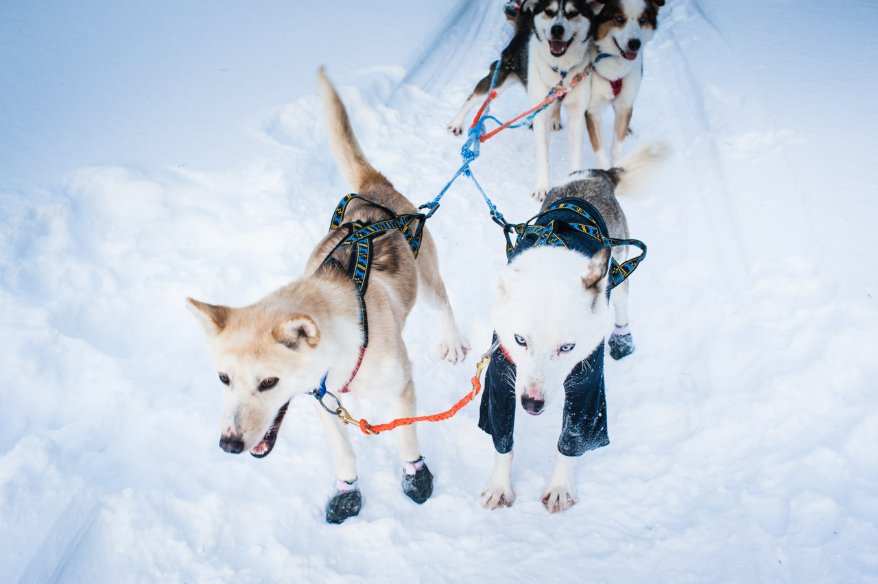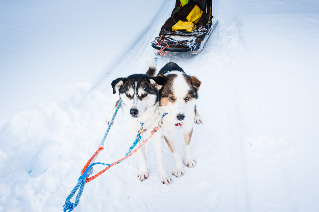 Am Sonntag hieß es dann zum ersten Mal „OKAY“ und „HALT„. Das sind DIE zwei Kommandos schlechthin. Mit „okay“ ziehen die Hunde an, mit „halt“ signalisiert man den Wunsch anhalten zu wollen. Ohne zusätzliche Kralle klappt das jedoch selten. 🙂 Wir lernen wie man die Hunde vorbereitet und dann geht es auch schon los. Auf einer Strecke von ungefähr 30KM lernt man dann den Umgang mit den Hunden und Schlitten.