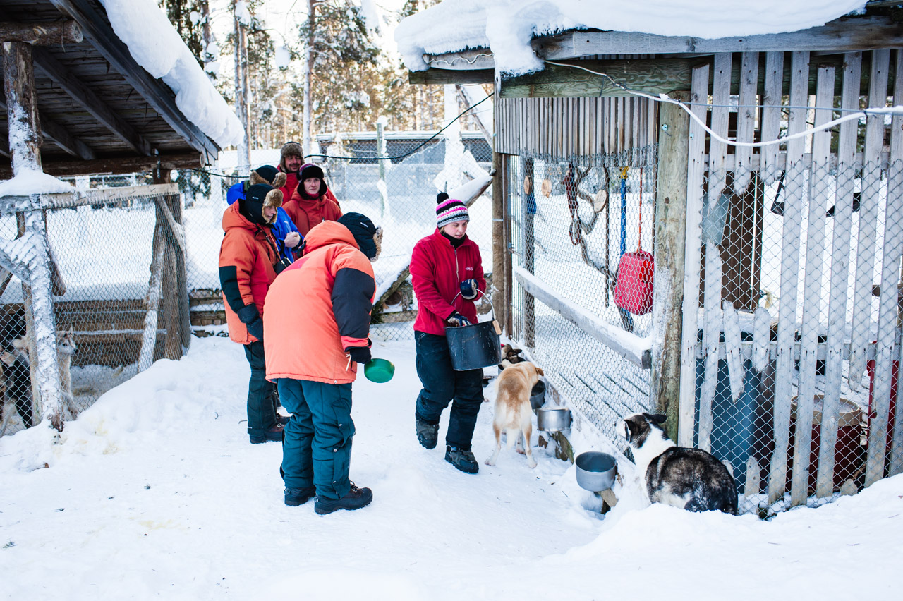 Das Hundecamp selbst liegt etwas außerhalb der Lodge und wir werden mit dem Bus dorthin gebracht. Da jeder diese gleiche Jacke bekommen hat, braucht es einen zweiten und dritten Blick um uns gegenseitig im Bus zu finden. Irgendwie sehen wir alle wie Kenny von South Park aus. 😀