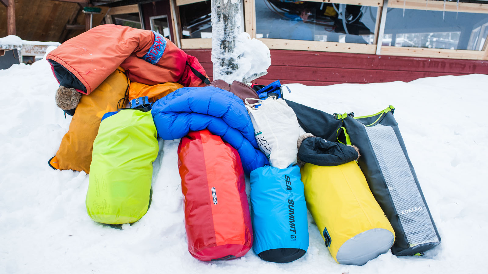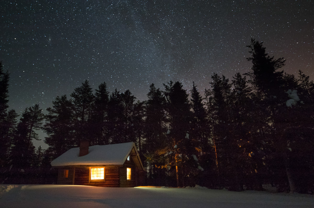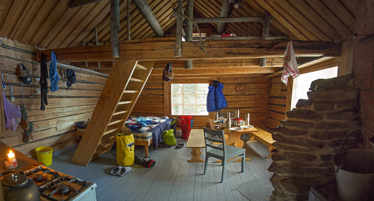 Willkommen zu unserer Wilderness-Tour. Wir verbrachten drei Nächte in Hütten ohne fließend Wasser und Strom. Den Weg zwischen den Hütten legten wir mit den Hunden zurück. Damit unsere Racker dabei nicht auf der Strecke bleiben, wurde in jeden Schlitten ein riesiger Sack Futter verstaut. Das zusätzliche Gewicht wurde außerdem mit einem fünften Hund kompensiert.