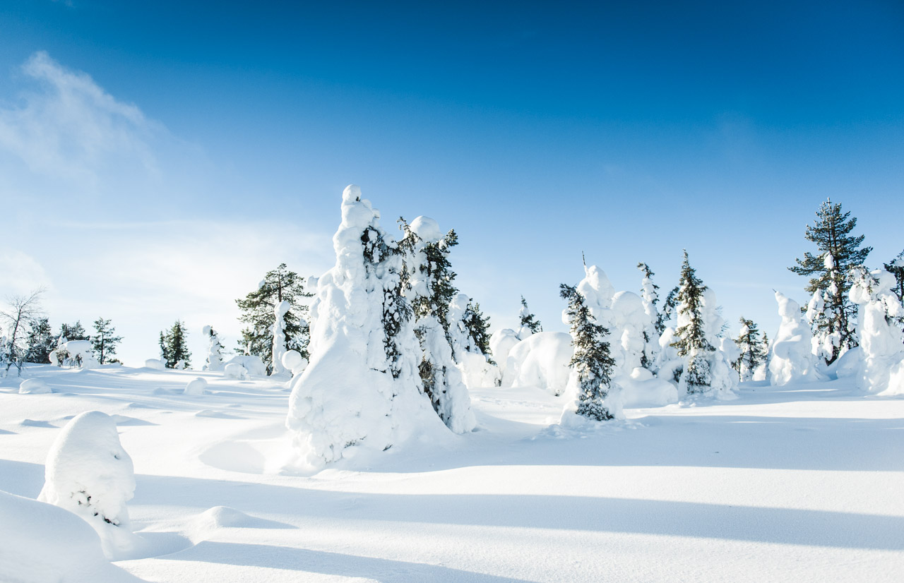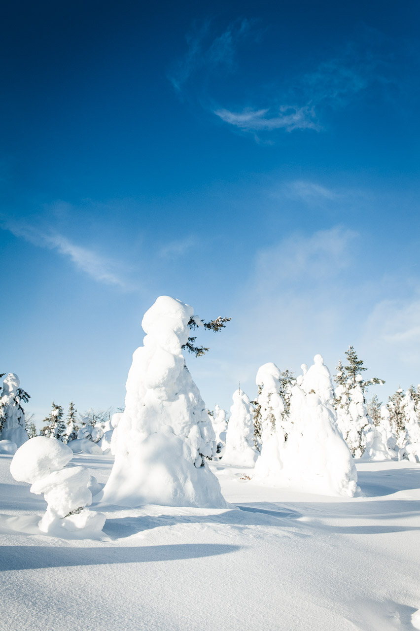 Die 10 km Tour führt uns durch tief verschneite Landschaft mit schneebedeckten Bäumen, wie man sie nur von Bildern oder Filmen kennt. Dabei bildeten sich fabelhafte Skulpturen. Über die Hälfte unserer Fotos stammen von unserer Wanderung. 🙂