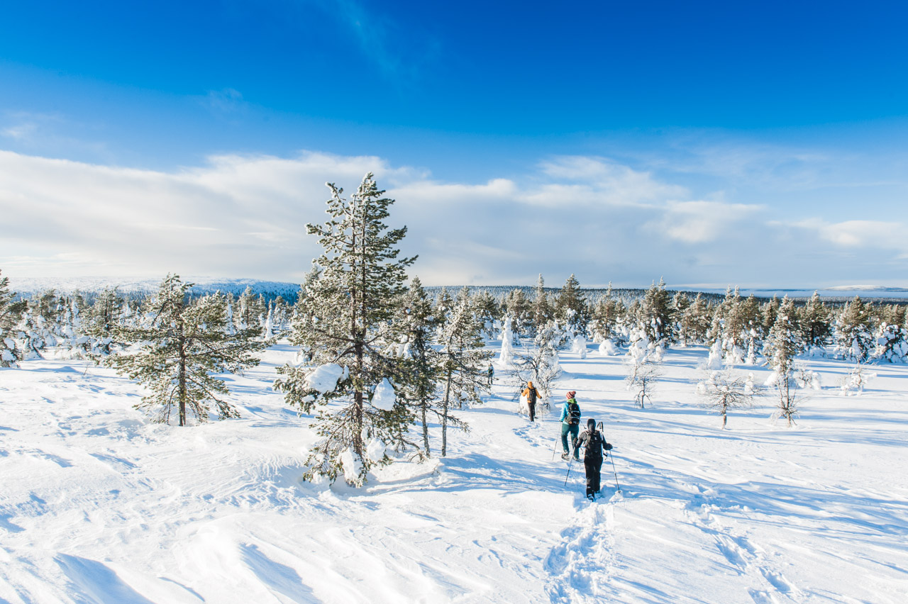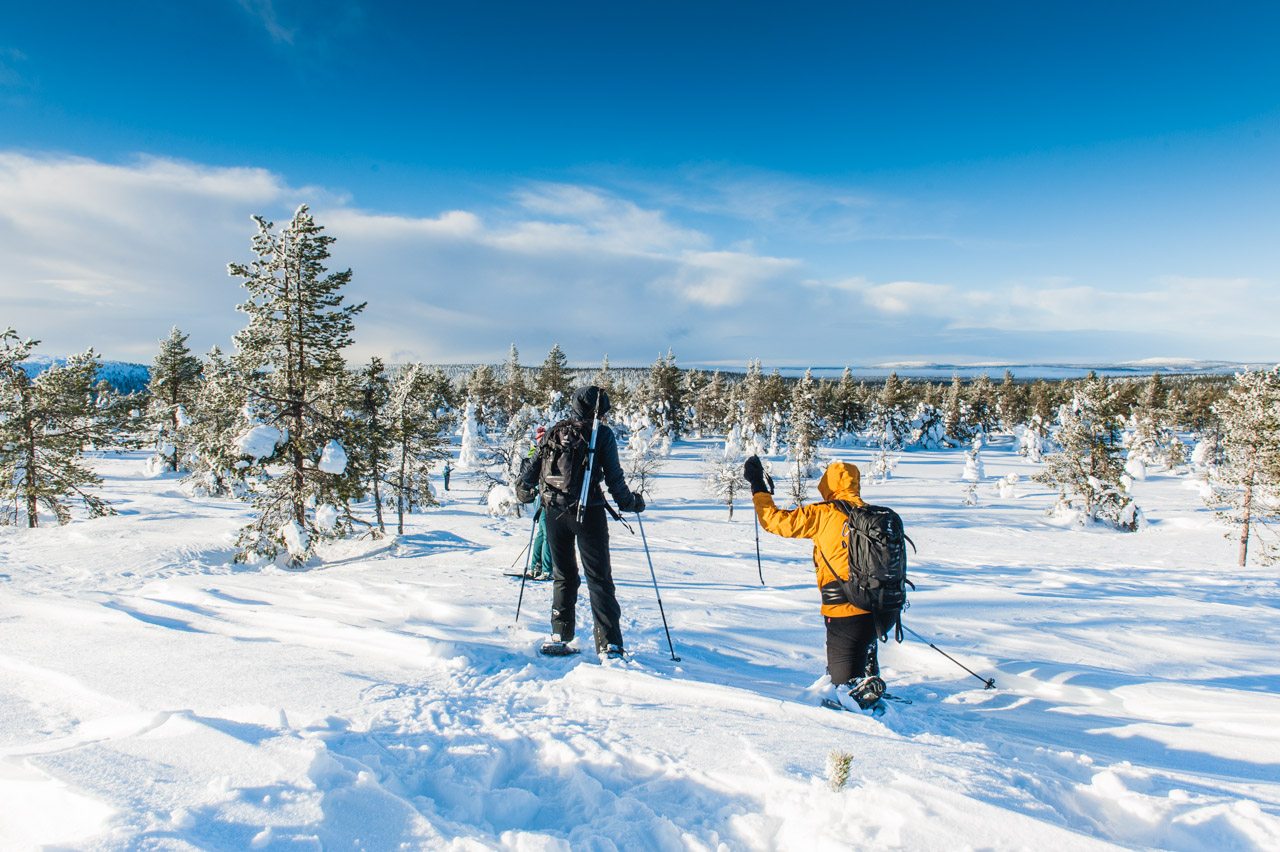 Nach unserer wirklich einprägsamen Hundeschlittentour (Teil 1 / Teil 2) verbrachten wir unseren „freien“ Freitag mit einer Schneeschuhwanderung. Unser Ziel war der „Linkukero“ – ein Berg direkt bei der Äkäskero Lodge mit einem schönen Rundumblick.
