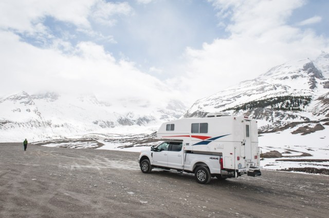 Am Columbia Icefield Discovery Centre machten wir länger halt und aßen auch etwas. Der Ausblick ist ein echtes Highlight von hier. Man ist von mehreren „3000endern“ umgeben und hat einen gewaltigen Blick auf das Columbia Icefield: